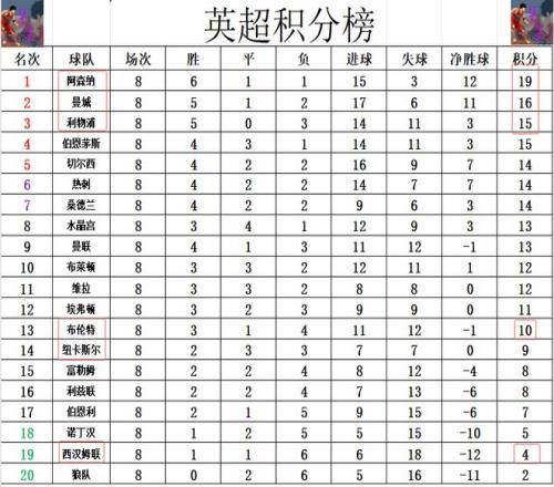 积分榜方面,本轮过后阿森纳继续领跑,而且随着利物浦3连败崩盘,阿森纳将领先优势扩大,曼城取代利物浦排在第2,落后阿森纳3分,利物浦和伯恩茅斯落后阿森纳4分。布伦特福德击败西汉姆联后,超过纽卡斯尔1分升至第13,输球的西汉姆联5轮不胜,还是倒数第2深陷降级区,落后了前几个赛季和他们差不多的曼联已经有9分之多。